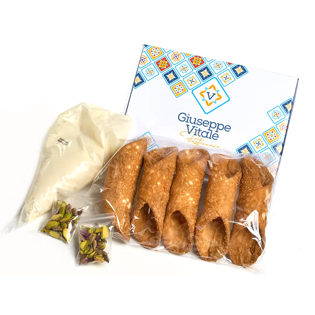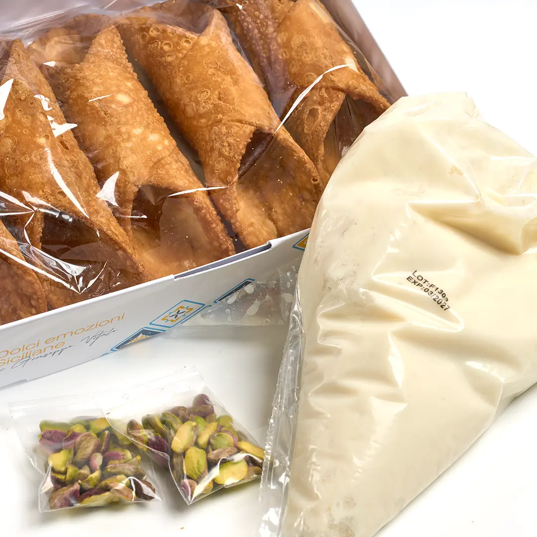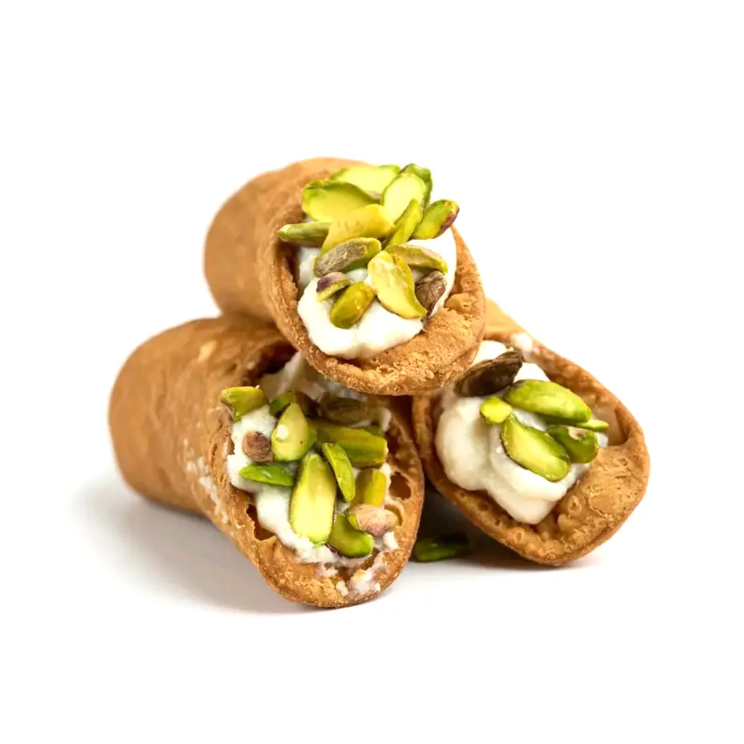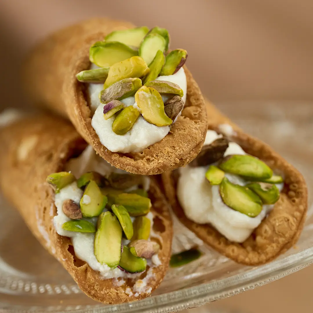 Un morso e tutto profuma di Sicilia. Di feste, di famiglia, di tradizioni che si tramandano nel tempo. Cialde fragranti che racchiudono una ricotta morbida e avvolgente, dolce al punto giusto, impreziosita da una pioggia di granella di pistacchi.