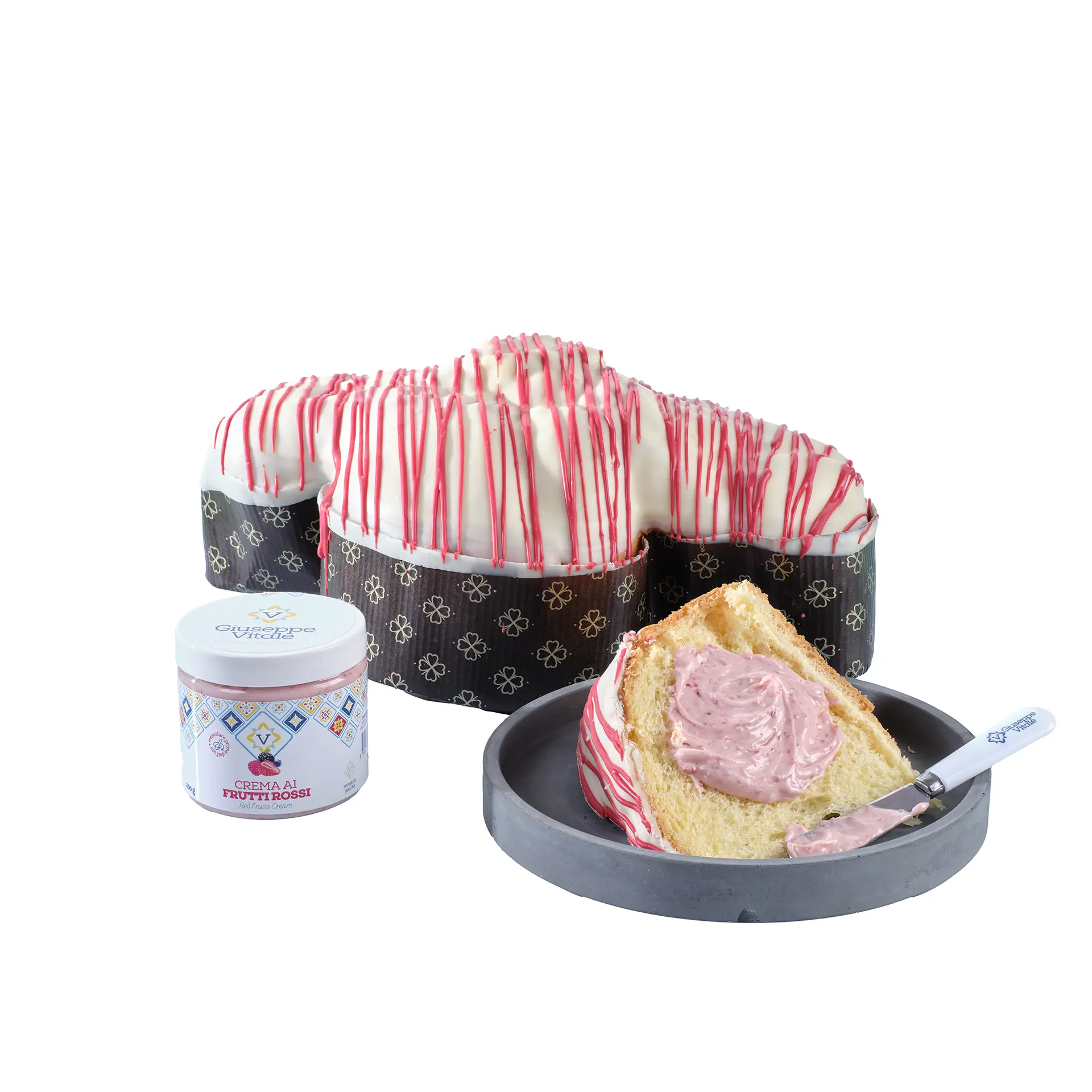 farina di grano tenero tipo 0, tuorlo d’uovo, zucchero, miele, burro, latte, fruttosio, lievito madre naturale, monotrigliceridi degli acidi grassi, bacche di vaniglia, sale, aromi naturali.